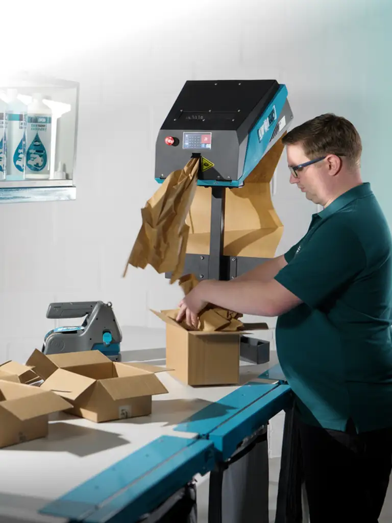 Foot pedal and manual control options, SuperFlow Auto allows the operator to customise paper length, quantity and dispensing speed, ensuring precise and consistent packing every time.